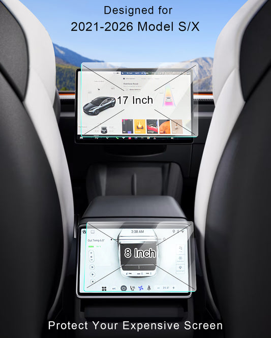17-inch Tempered Glass Screen Protector for Tesla 2021–2026 Model S / X + Rear 8-inch Screen