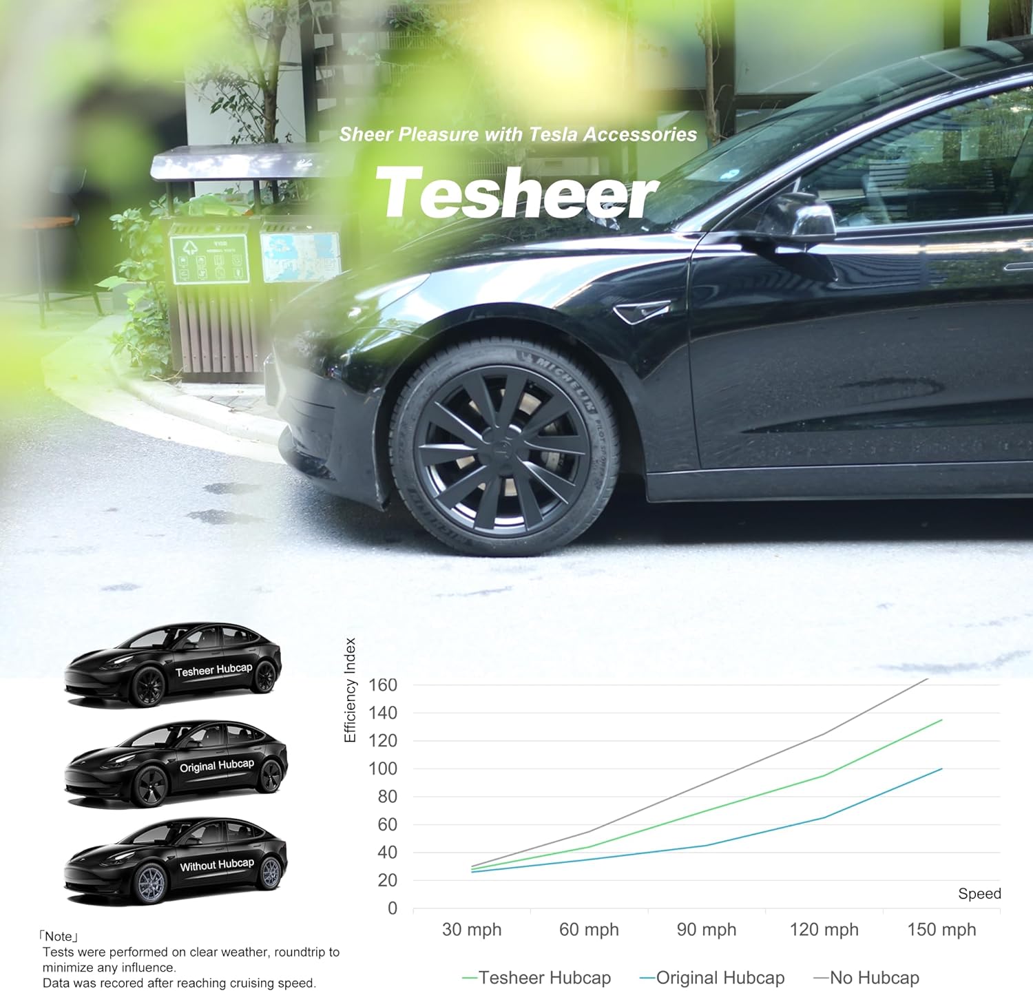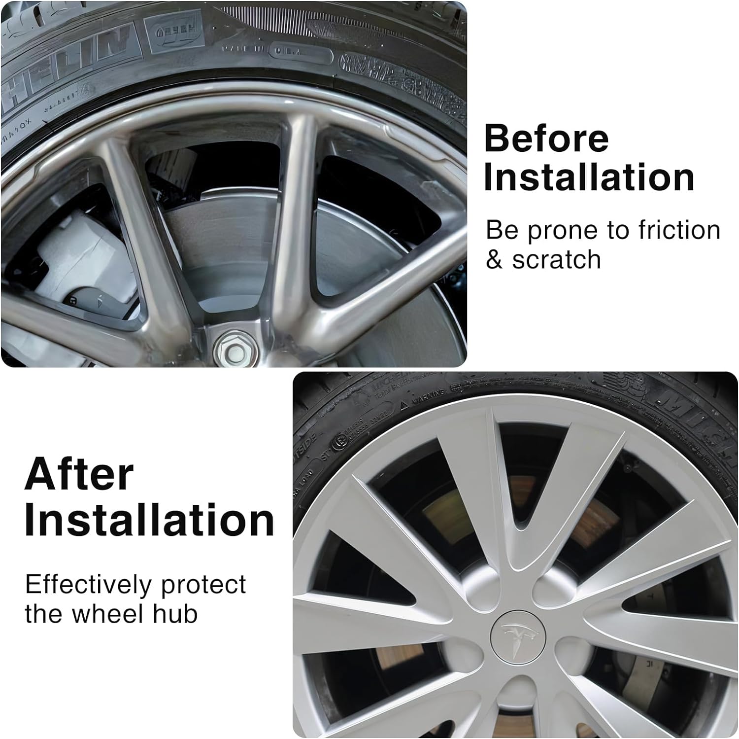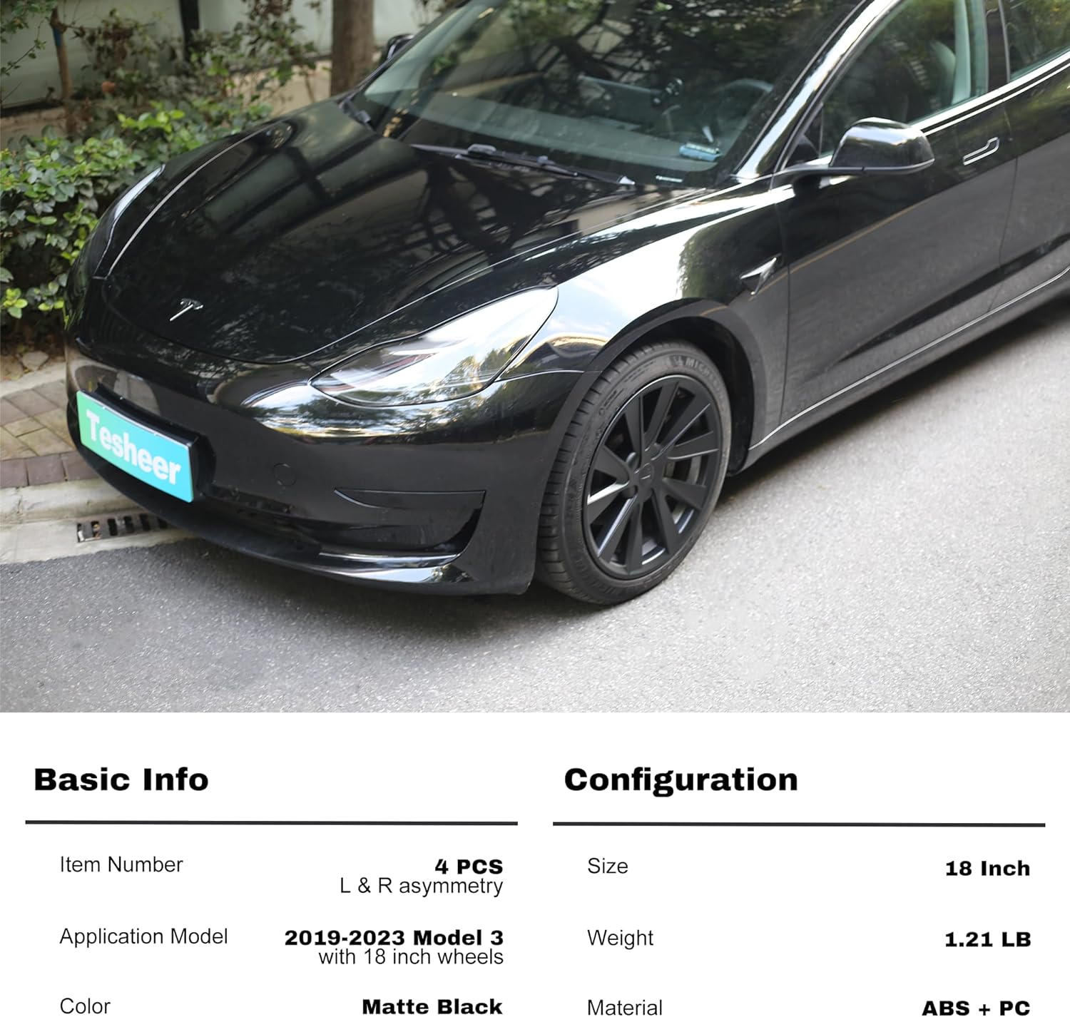 Enhance your Tesla Model 3 (2019-2023) with 18" wheels by using Tesheer Clip-On Hubcaps. This set includes 4 L&R asymmetric hubcaps, EVA foam, and 4 center caps for a stylish and protective addition to your car. Made from durable ABS+PC material, these hubcaps are suitable for all weather conditions and their aerodynamic design helps to reduce energy usage. The glossy silver color complements all car colors and the easy snap-on installation requires no tools.