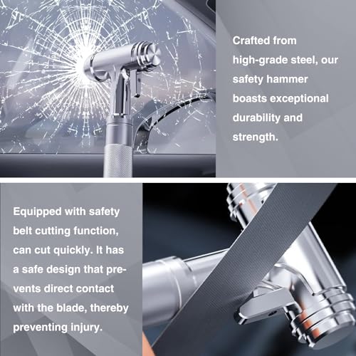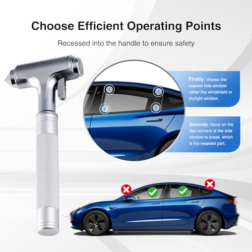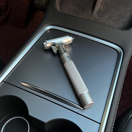 Essential Tesla escape tool: Multi-function car safety hammer. Breaks glass for emergencies, cuts seatbelts, & suits outdoor adventures. High-grade steel for strength & durability. Ergonomic grip for secure hold. Compact & lightweight for easy storage in Tesla models 3/Y/S/X/Cybertruck/Semi.