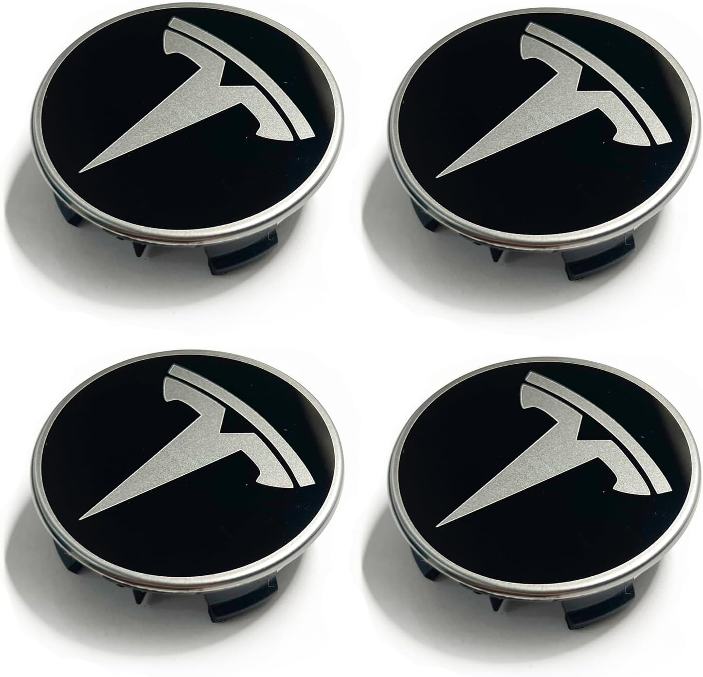 Tesheer 4-PCS Wheel Center Hub Caps with Glossy Metal for Tesla Model 3/Y 18-19″ Wheels